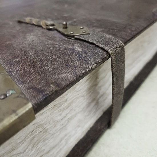 The First Codex of Egedi is a physical object: a hand-bound leather book measuring 45 cm x 30 cm x 7 cm. It contains 100 pages of handcrafted, laid paper, with each page dedicated to a single symbol.
